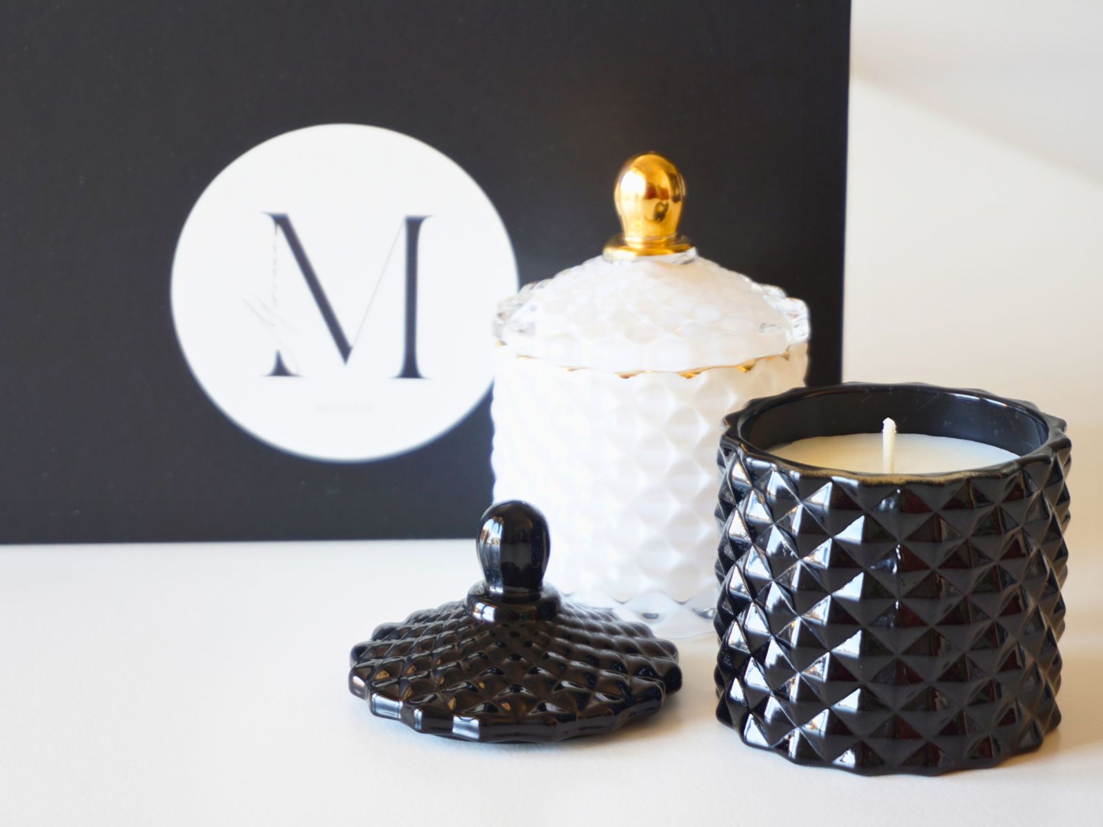 Il set è confezionato in una scatola regalo con apriscatole magnetico e un elegante portacandele all'interno, per garantire la sicurezza dei portacandele e dei coperchi.