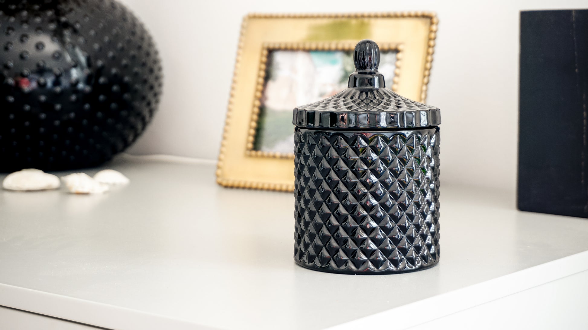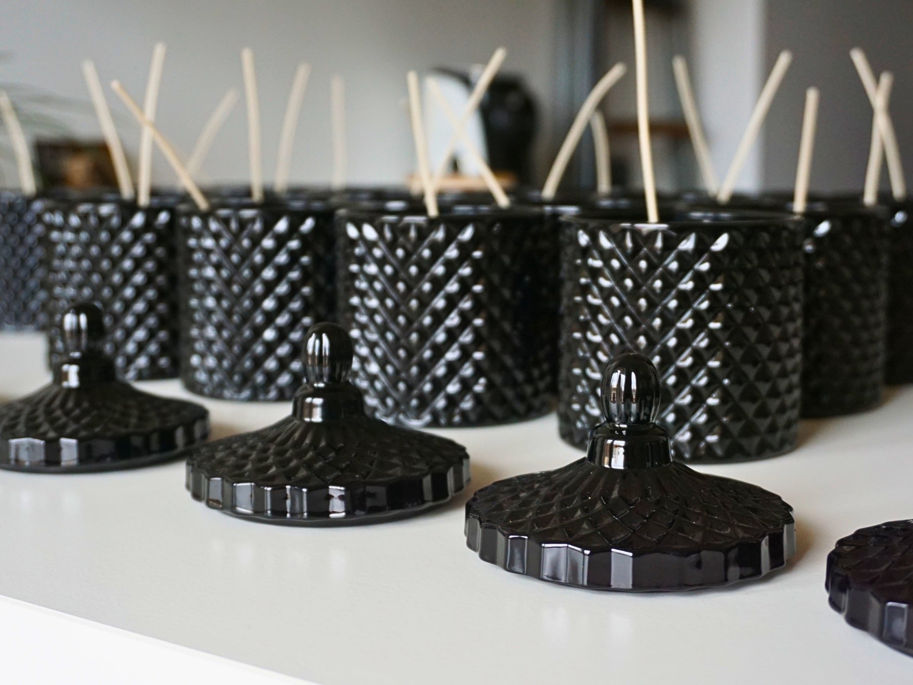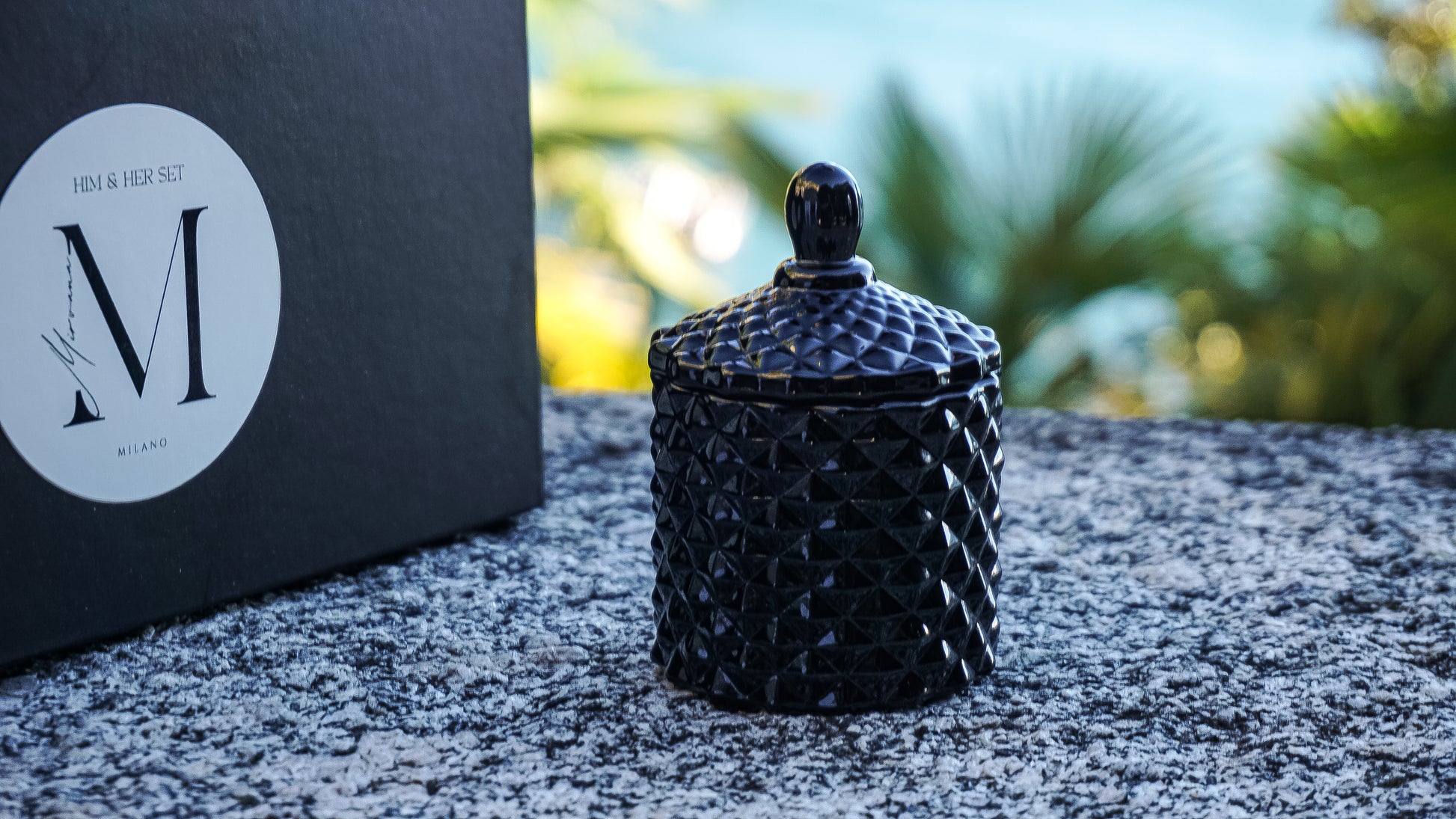La nostra candela Ombre Leather è disponibile in barattoli di vetro nero da 230 ml con coperchio in vetro. Questi barattoli possono essere riutilizzati in seguito in casa, così come per altre candele, candele ricaricate.